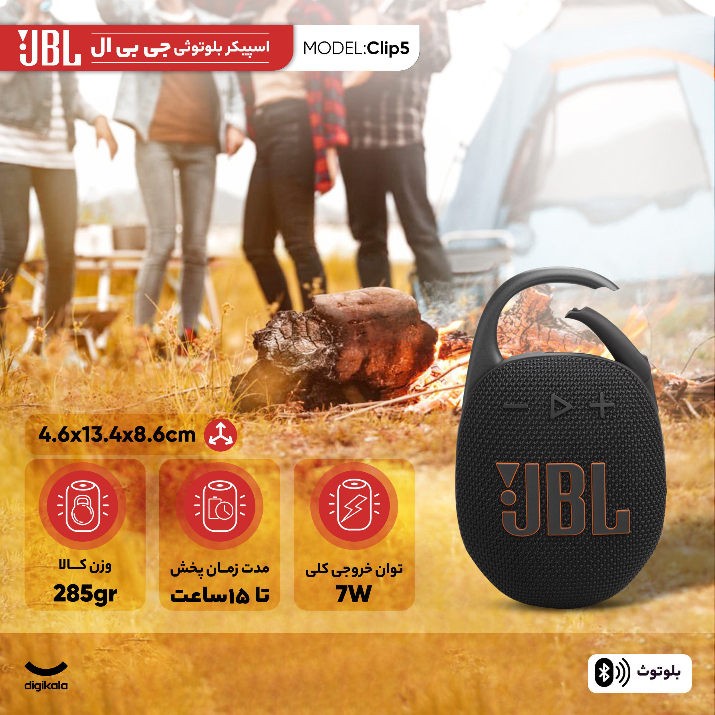 اسپیکر بلوتوثی قابل حمل جی‌بی‌ال Clip 5، جدیدترین ستاره در کهکشان اسپیکرهای فوق‌العاده محبوب و دوست‌داشتنی سری Clip جی‌بی‌ال است که با هر نسل، تعریف جدیدی از ترکیب بی‌نظیر قابلیت حمل، کیفیت صدا و دوام را ارائه می‌دهد. Clip 5 با ارتقاهای هوشمندانه در طراحی کارابین، بهبود قابل توجه در کیفیت و قدرت صدا با امضای JBL Pro Sound، مقاومت کامل در برابر آب و گرد و غبار با استاندارد IP67، عمر باتری طولانی‌تر با قابلیت Playtime Boost و بهره‌گیری از جدیدترین فناوری‌های اتصال مانند بلوتوث ۵.۳ با پشتیبانی از LE Audio و قابلیت شگفت‌انگیز اتصال چند اسپیکری Auracast، فراتر از یک اسپیکر کوچک، به یک همراه صوتی ضروری و جدایی‌ناپذیر برای تمام لحظات زندگی، از ماجراجویی‌های هیجان‌انگیز در طبیعت گرفته تا دورهمی‌های دوستانه و لذت بردن از موسیقی در خلوت، تبدیل شده است.