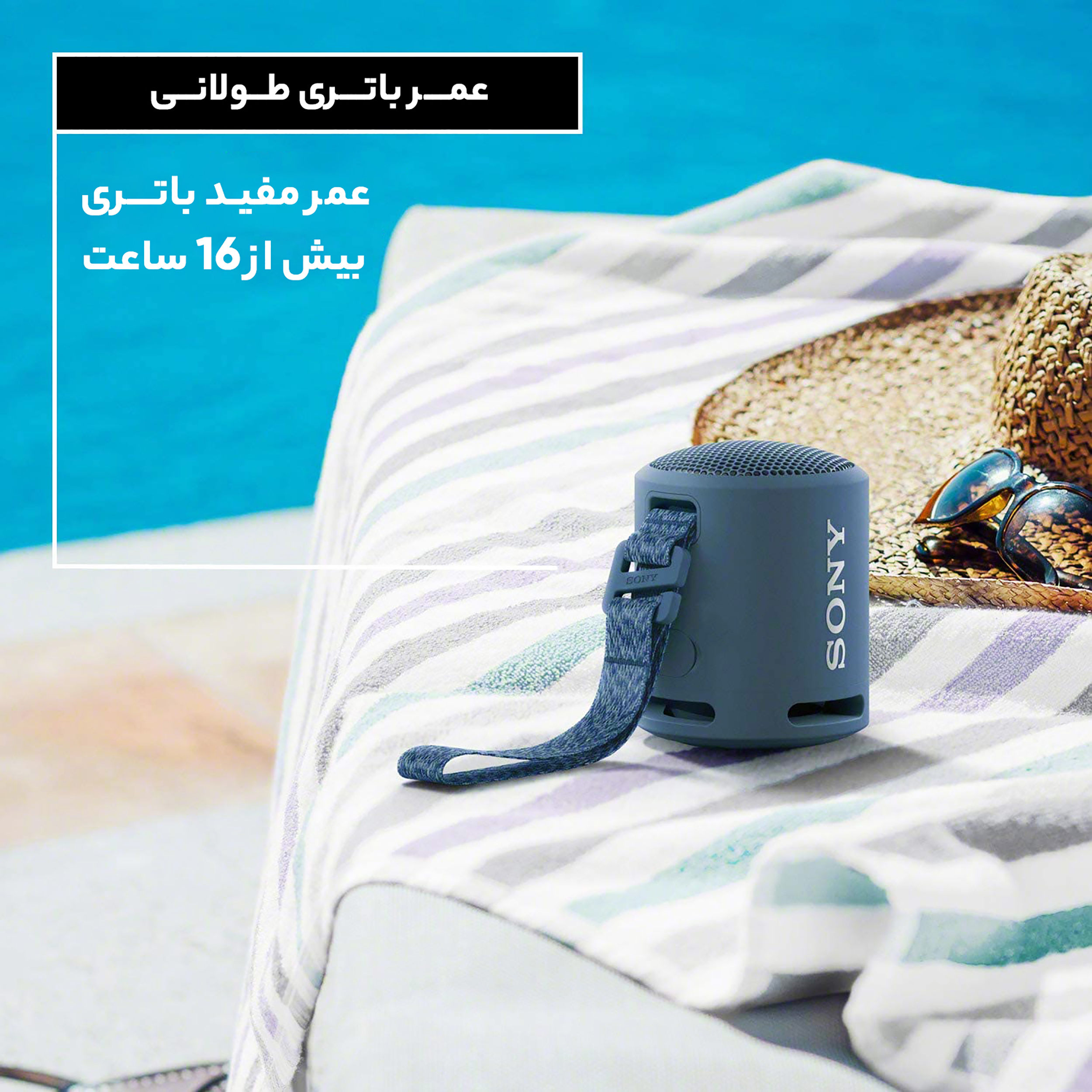 SRS-XB13، بادوام و قابل حمل بوده و دارای یک بند ویژه برای راحتی در سفر است. این بند بادوام، این اسپیکر را تقریبا برای هر کاری آماده می‌کند. زمانی که بیرون و زیر آفتاب هستید، آن را از کوله پشتی یا روی مچ دست یا حتی از چتر آفتابی آویزان کنید تا اسپیکر رو به پایین مانند یک آبشار، موجی از موسیقی را ایجاد و شما را در ریتم غرق کند.
