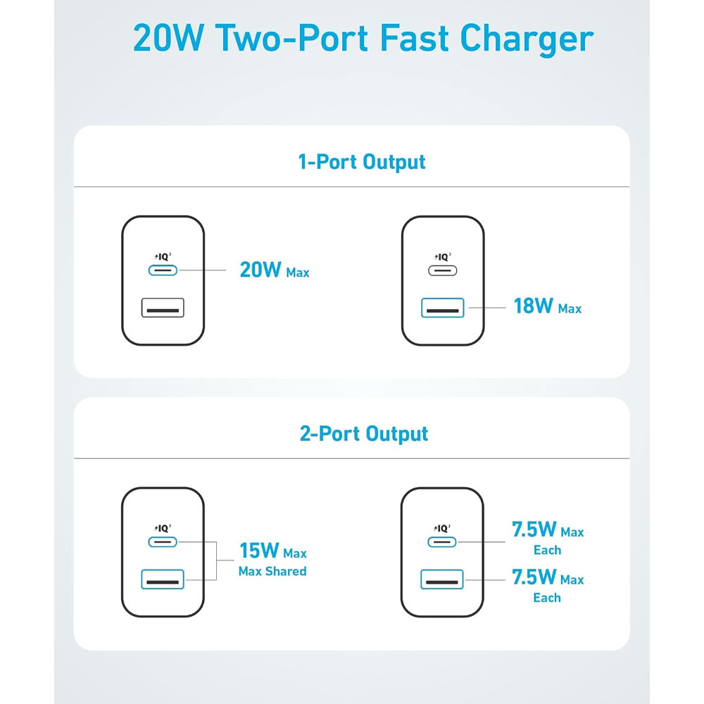 شارژر دیواری 20 وات انکر مدل B2348 به همراه کابل USB-C به طول 1.5 متر