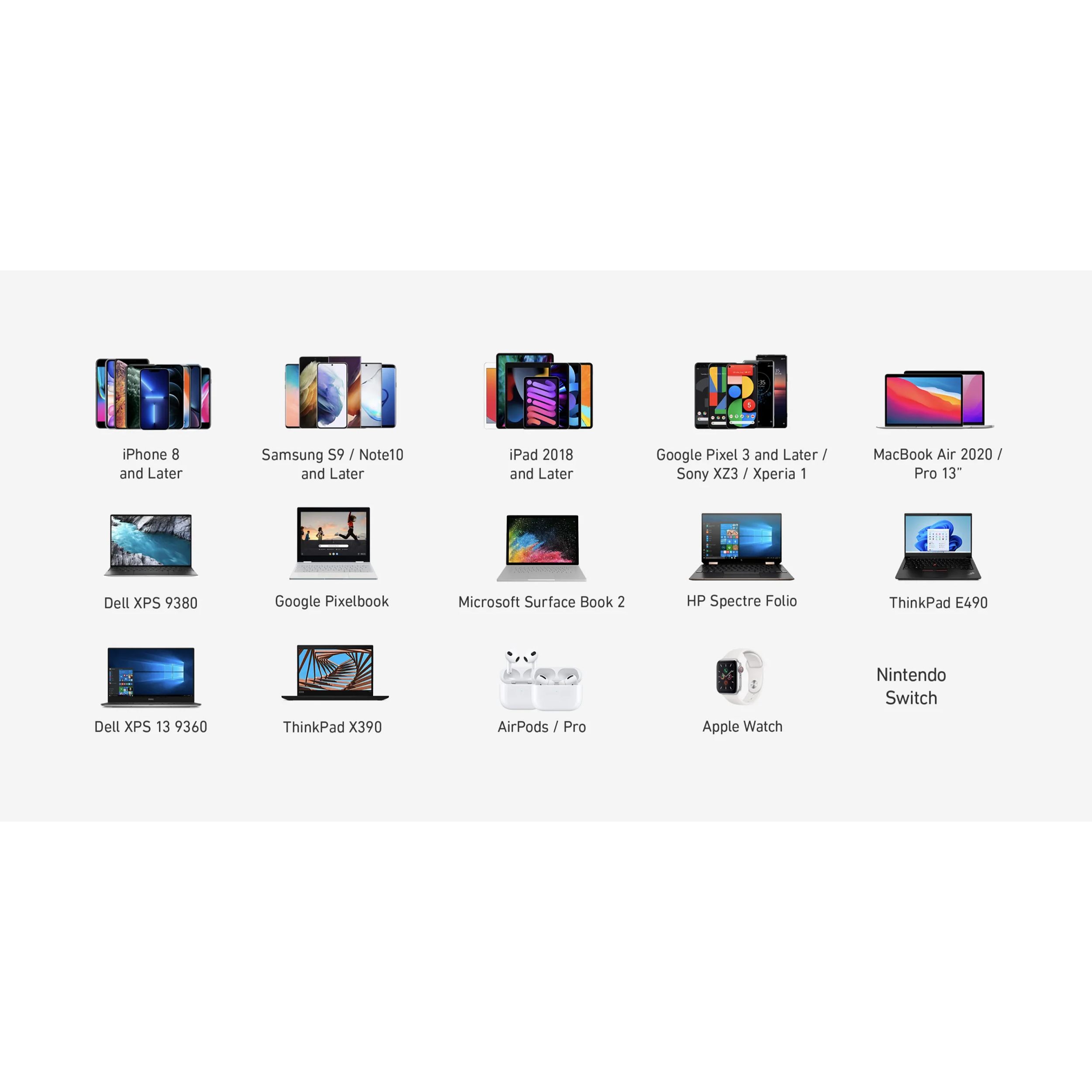 - توضیحات سازگاریقابل استفاده با نوتبوکها و تبلتهایی مانند MacBook Air (2020)، MacBook Pro 13″، Dell XPS 13، ThinkPad X390، iPad (نسل 2018+)؛ همچنین گوشیها و گجتها از جمله سریهای iPhone 12 تا 16، Samsung Galaxy S و Note، Google Pixel، Sony Xperia، Nintendo Switch، AirPods و سایر دستگاههای شارژ بیسیم Anker