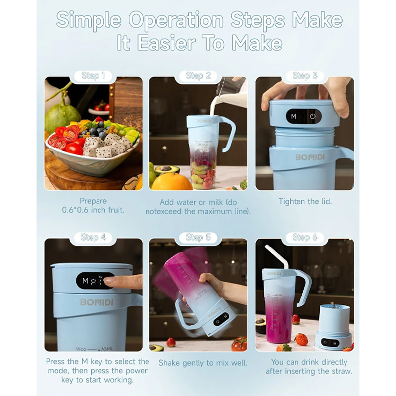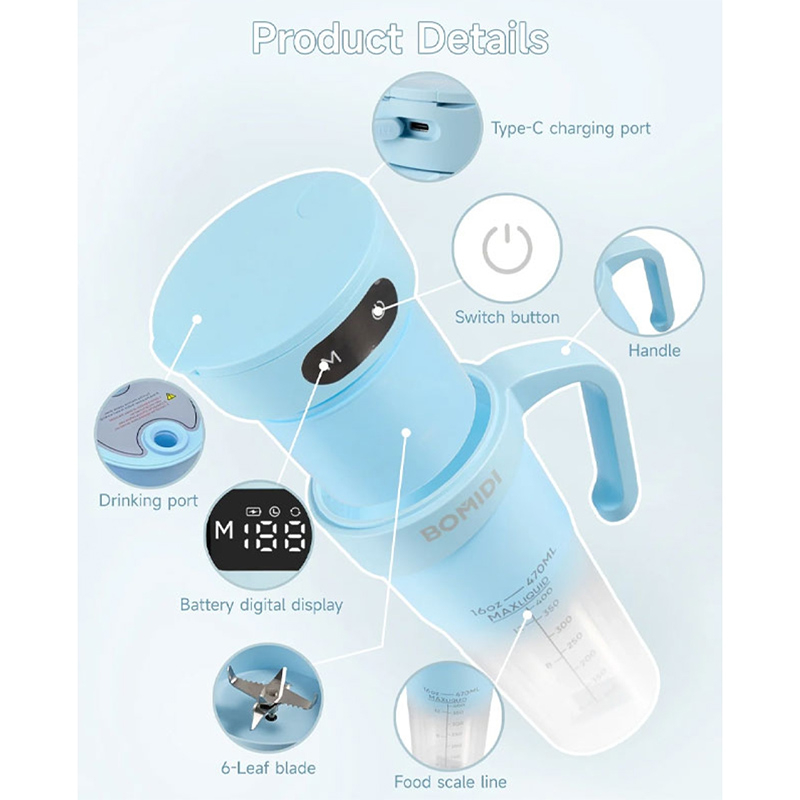 شیکر بمیدی مدل JB01 با داشتن استاندارد مقاومت در برابر آب IPX7، به شما این امکان را میدهد که بدون نگرانی از نفوذ آب، آن را مستقیماً با آب بشویید.دیگر نیازی به جدا کردن قطعات یا صرف وقت زیاد برای تمیز کردن دستگاه نیست. تنها با چند ثانیه آبکشی، مخلوطکن شما کاملاً تمیز و آماده استفاده مجدد خواهد بود.این شیکر و مخلوط کن با سه حالت سرعت مختلف، به شما اجازه میدهد تا بر اساس نوع میوه یا سبزیجات، سرعت مناسب را انتخاب کنید. از یک ترکیب ملایم برای میوههای نرم مانند توتفرنگی و موز، تا سرعت بالا برای میوههای سفتتر مانند سیب یا حتی یخ قابل استفاده می باشد زیرا با 6 تیغه فولادی تیز و مقاوم، میوهها و سبزیجات بهطور کامل خرد و ترکیب میشوند تا یک نوشیدنی کاملاً صاف و یکدست داشته باشید. این تیغههای پیشرفته، حتی یخ و میوههای سفت مانند سیب یا هویج را نیز به راحتی خرد کرده و اسموتیای بینظیر با بافتی نرم و بدون تفاله ارائه میدهند.