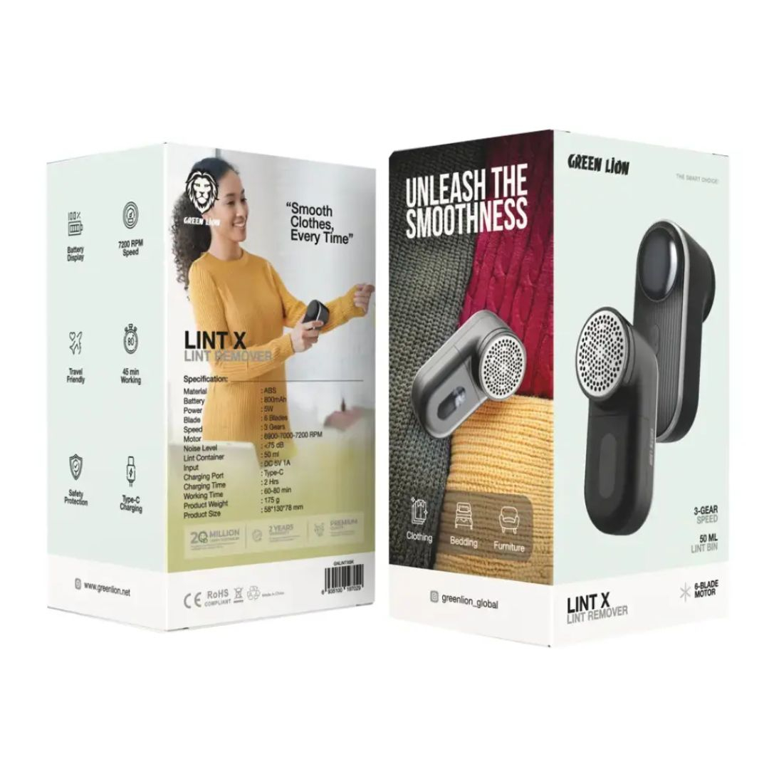 Lint X مجهز به باتری 800 میلیآمپرساعتی قابل شارژ از طریق درگاه Type-C است و تنها در مدت ۲ ساعت بهطور کامل شارژ میشود. پس از شارژ کامل، بسته به سرعت انتخابی، بین ۶۰ تا ۱۲۰ دقیقه کارایی مداوم دارد. این دستگاه دارای ۳ حالت سرعت مختلف با چرخش موتور بین 6900 تا 7200 دور در دقیقه (RPM) است که امکان تنظیم قدرت متناسب با نوع پارچه را به کاربر میدهد.